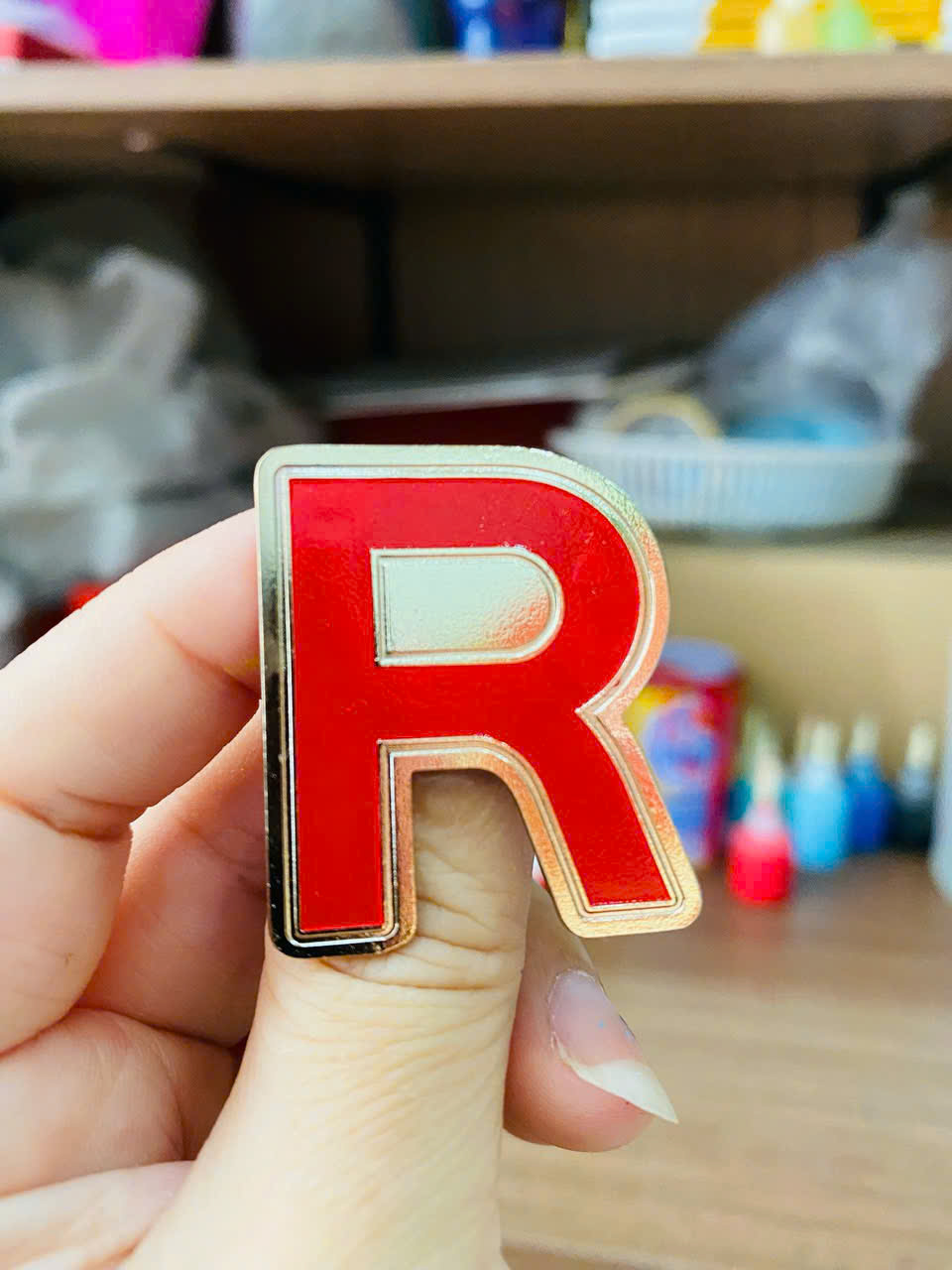 Huy Hiệu kim loại ăn mòn - Logo cài áo cắt chữ R